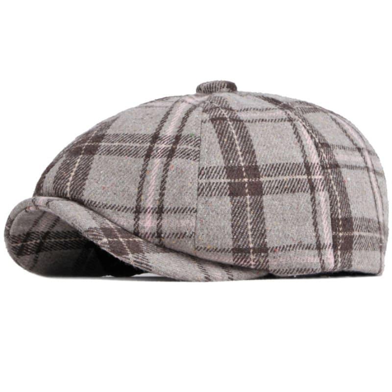 Brooklyn Gray Tartan Wool Newsboy Cap