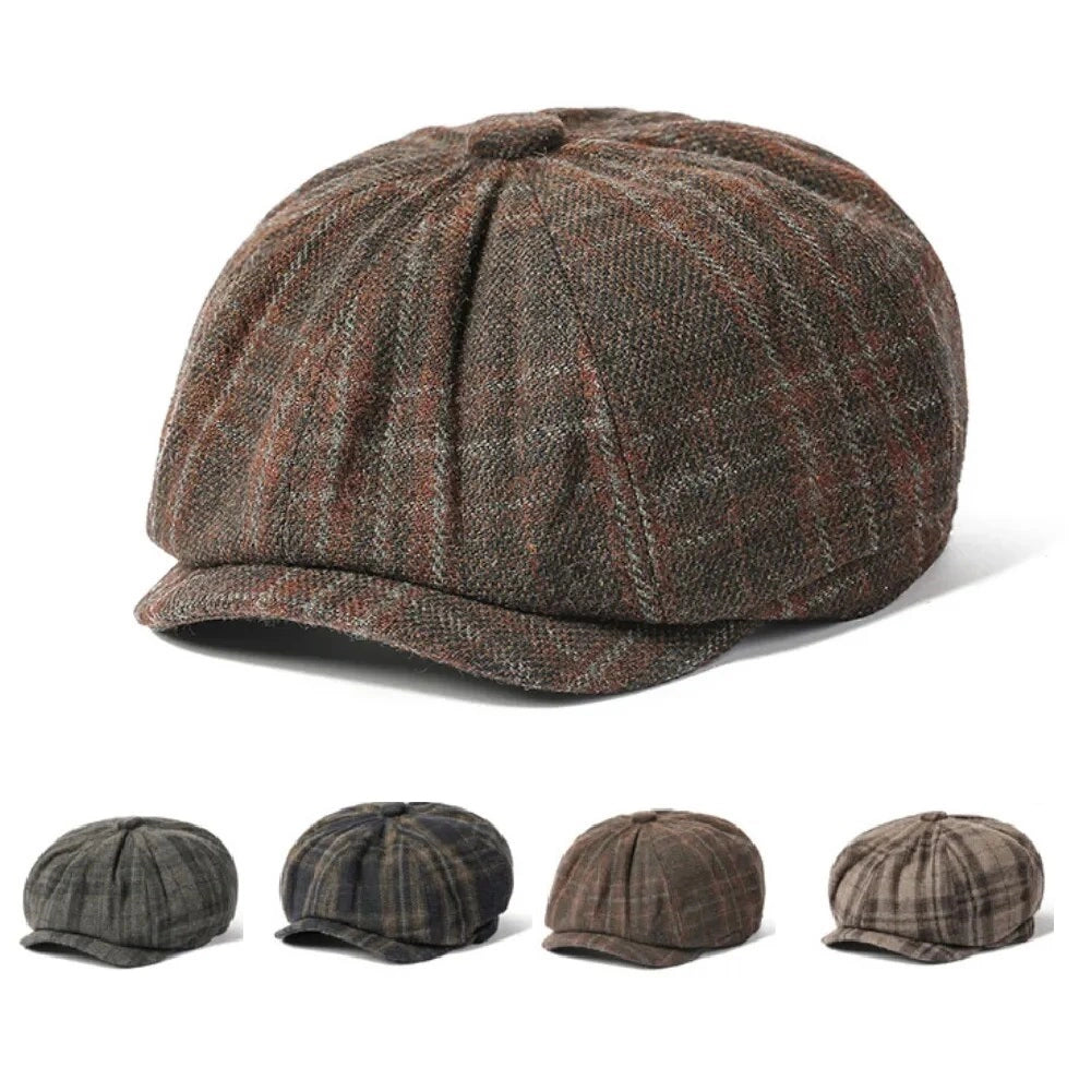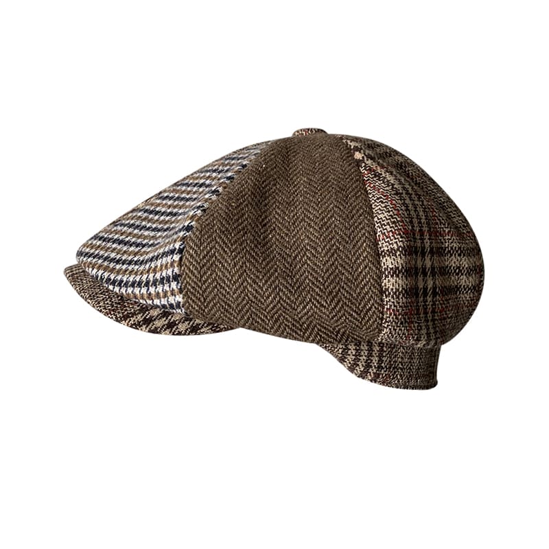 Plaid & Herringbone Wool Newsboy Cap